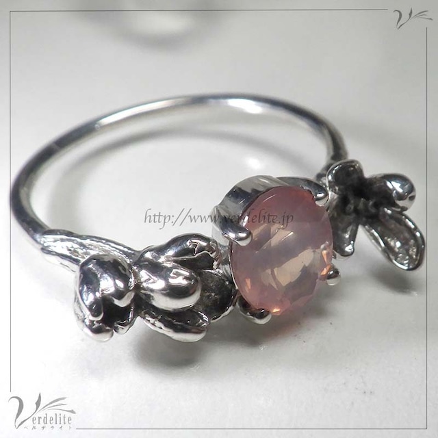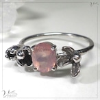 優しいピンク色のローズクォーツが、金木犀の花の繊細なデザインを引き立て、華やかさを添えています。