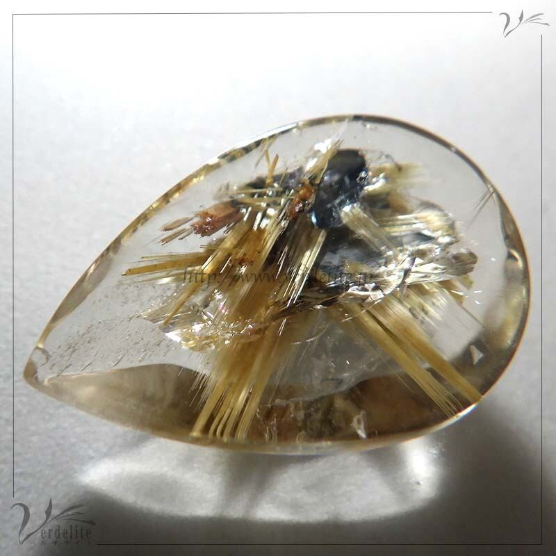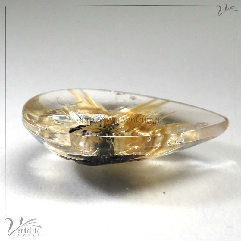 太陽ルチルと呼ばれているタイプのルチルクォーツで、ヘマタイトの中心部分からゴールドのルチルが放射状に伸びています。