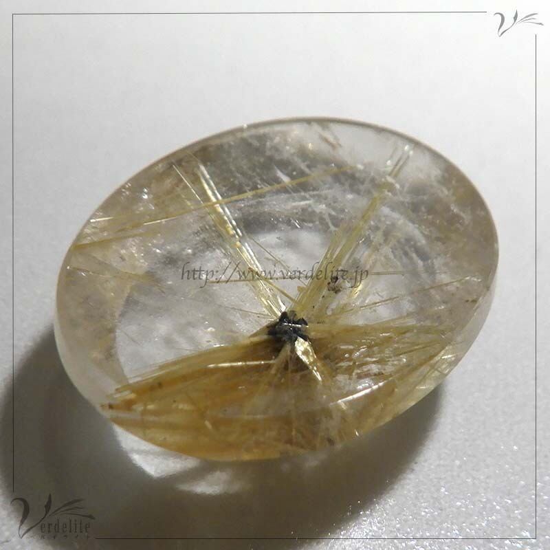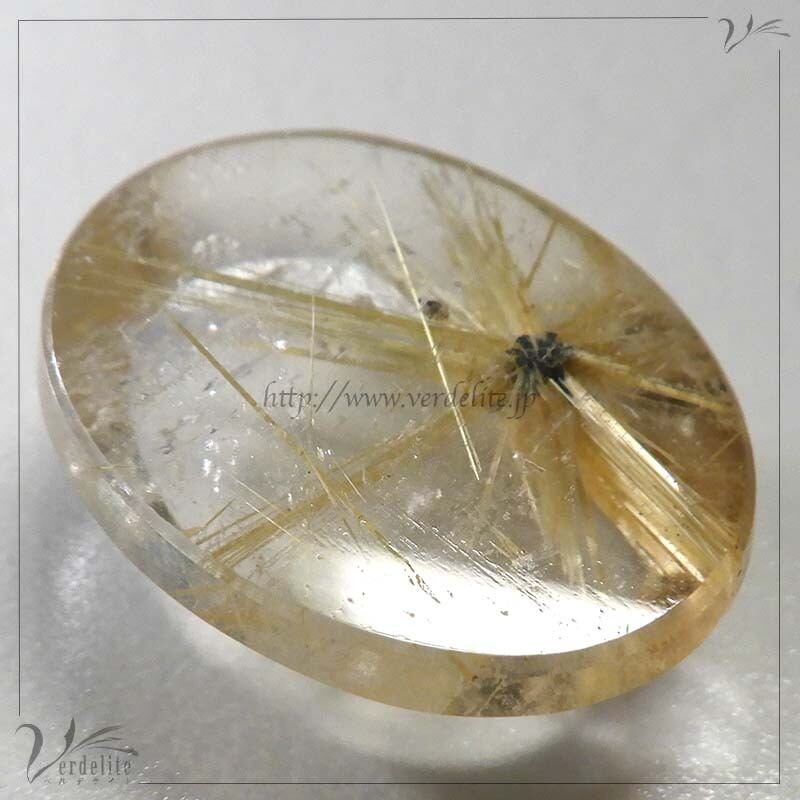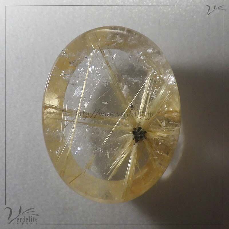 太陽ルチルと呼ばれているタイプのルチルクォーツで、ヘマタイトの中心部分からゴールドのルチルが放射状に伸びています。