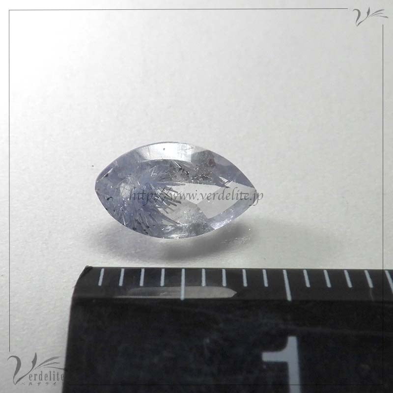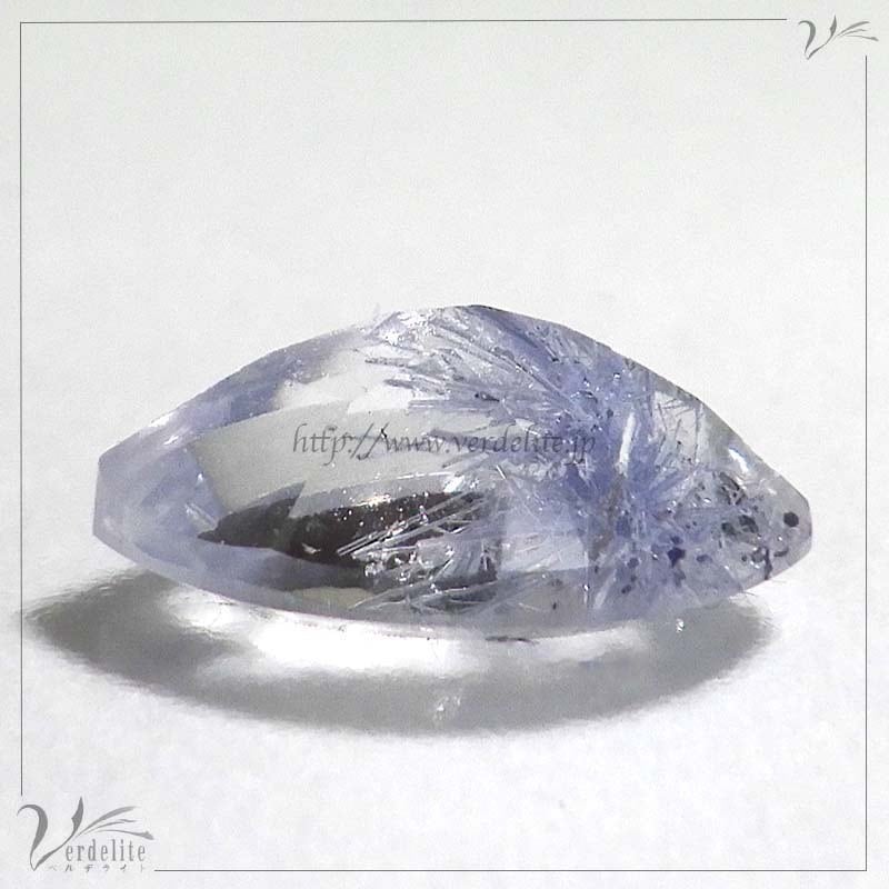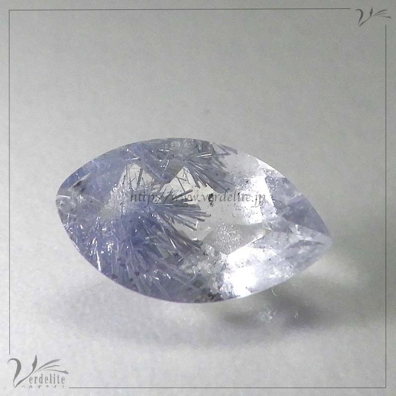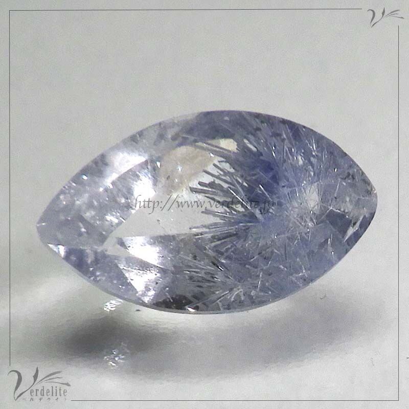 ファセットカットされたブラジル産の青いインクルージョンが美しいデュモルチェライト・イン・クォーツ。