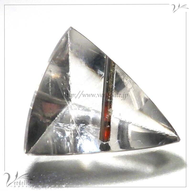 水晶の中にそびえ立つような赤黒のルチル結晶。