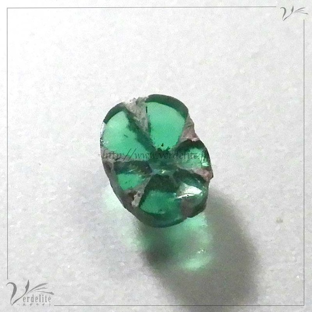このトラピッチェはちょっとわかりにくいのですが、通常のトラピッチェ・エメラルドとは黒い部分とエメラルドの部分が逆に成長しています。