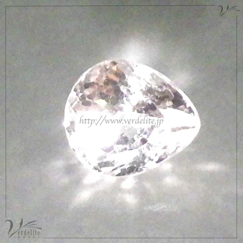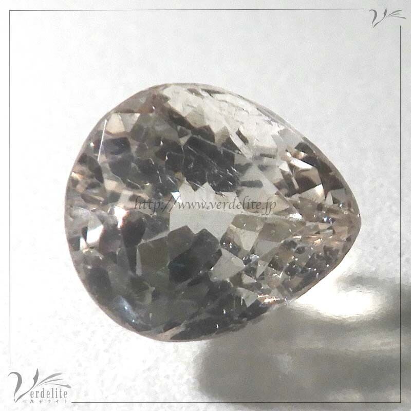 今まで見たことのあるモルガナイトよりもかなり淡い色で、光のあたる角度によってオレンジ色に見える部分があったり、カラーレスに見えたりします。