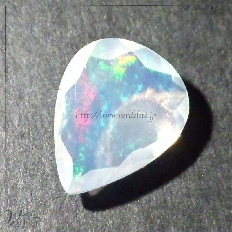 ファセットカットのオパールはなかなか美しいルースを見つけることができませんが、このオパールは青緑色の遊色効果がとても良く出ています。