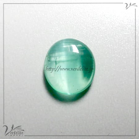 全体的に薄い石なのですが、淡いエメラルドカラーが魅力的で、キャッツアイ効果がしっかりと見えるのも素敵です。