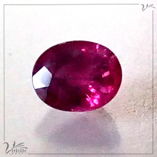 深紅の美しい輝きに、すこしピンキッシュな部分が見えるとても魅力的なルビーです。