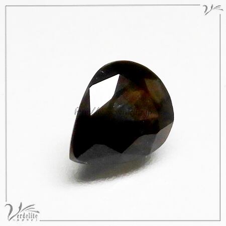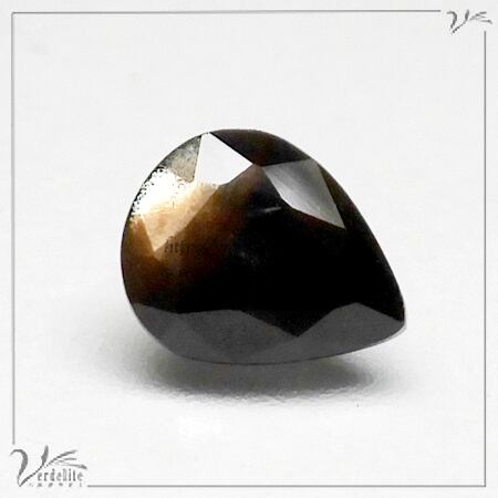 限りなく黒に近い深い青いサファイアの中にゴールドのシラーが見えます。