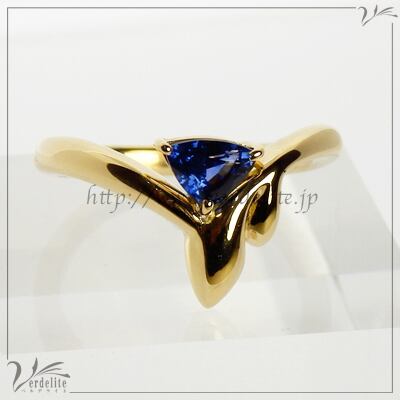 海藻のイメージですが、海で静かにたゆたうだけでない、何か秘めたものを主張してみたいと思い、濃い青のサファイアをゴールドでセッティング。