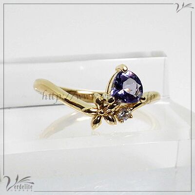 柔らかい花びらと淡い青紫がとても美しい華奢なリングです。