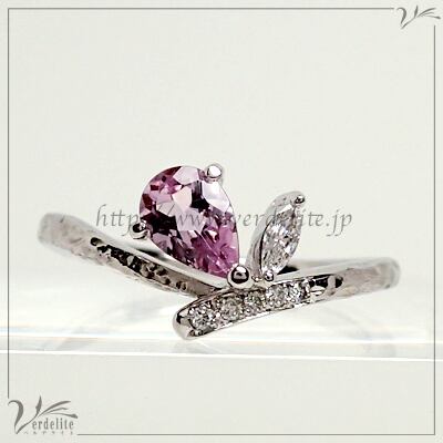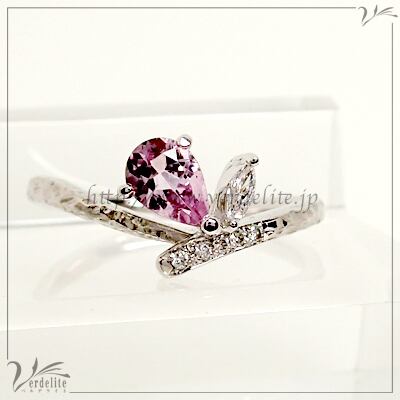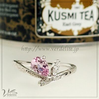 この現品は、加熱されたトパーズですが、優しいピンク色のペアシェイプがマーキースのダイアと並ぶと、優しいだけでなく凜とした佇まいを醸し出します。