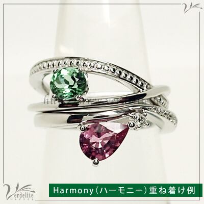 Harmony(ハーモニー)は、一つ一つが素敵に個性と輝きを放ちながら、重ねれば、より魅力的になるジュエリーです。 セッティングされた宝石も、それぞれ一つ一つの個性が魅力的に表現されていながら、二つ三つと重ねた時に現れれるハーモニー。 和やかに合わさっていく、その中で個性を発揮する。 お互いがお互いを引き立てつつ、それぞれを際立たせる。 そんな世界になるように。そういう願いを込めたシリーズです。