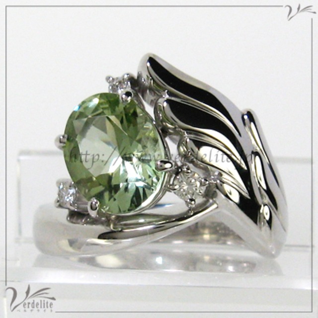 淡いグリーンのトルマリンをセッティングしたウィングW