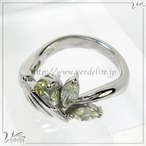 イエローグリーンのグロッシュラーガーネットと、ほぼカラーレスのグロッシュラーガーネットの組み合わせで、羽根のモチーフのクールなイメージを強調してみました。