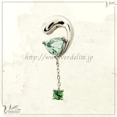 プラチナに爽やかなグリーンの輝きのキャットテールトップ。 ナイジェリアのグリーンベリルとタンザニアのグリーンガーネット、どちらもアフリカからきたグリーンの宝石をセッティングしています。 爽やかにキラキラと煌めいて、心癒やされる色合いです。ちょっとお疲れ気分でも猫の尻尾のぷっくりした感じと緑の色にほっとして下さい。